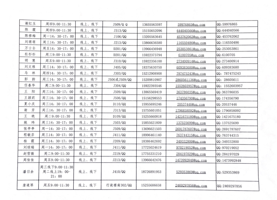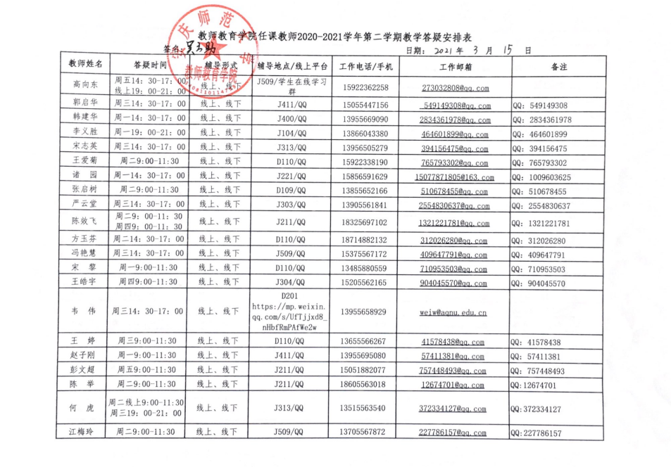 教师教育公司任课教师2020-2021学年第二学期答疑时间安排表