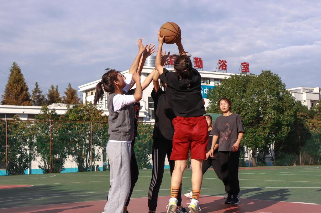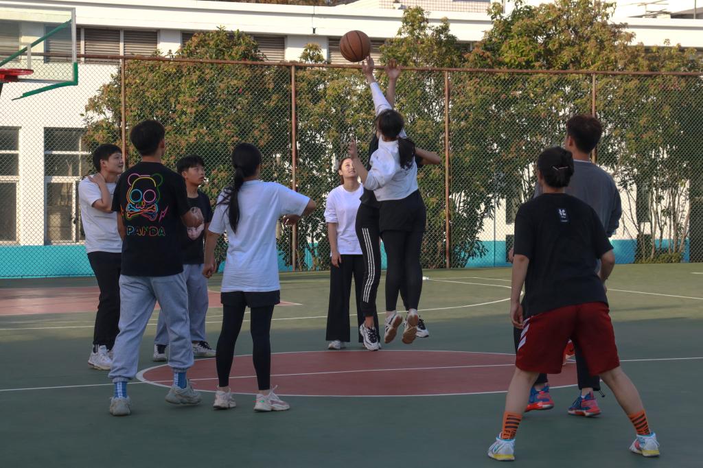 只知道网球和乒乓球可以男女混打,没想到篮球也能。10月24日和25日,教师教育公司在东门篮球场举行首届趣味篮球赛。比赛采取二男三女的混合组队方式,并且制订了相应的计分制度——男生进球得一分,女生进球得三分。