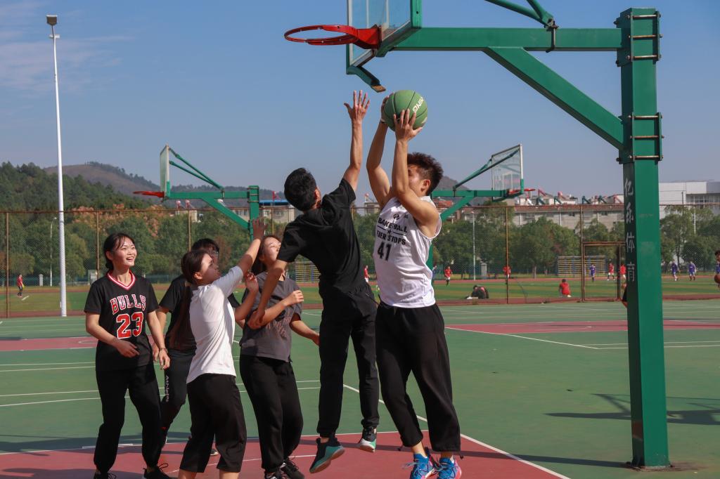 篮球在手下前后左右不停地拍着,抓住机会左拐、右拐,加快步伐冲破两层防线,一个转身投篮,篮球不偏不倚地落在筐内。“进了进了!”,学前教育专业2020(2)班的罗美薇和她的队友们欢呼着。“我认为参加团体比赛可以促进同学们相互了解,也让我们更加团结。”罗美薇表示,这次活动让她感受到了对于班级应有的责任感和使命感,是进入大公司园之后学到的重要一课。