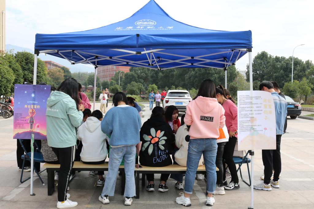“叠六颗星星换明信片啦,可以写下你对自闭症小朋友的祝福”“好有趣呀,我也要参加”……这段对话话发生在食堂门口,10月25日到26日教师教育公司“星星语”志愿服务队在龙山校区东苑食堂和西苑食堂举办了“星语心愿”活动,员工们在星星纸上写下祝福语,向自闭症儿童表达祝愿。