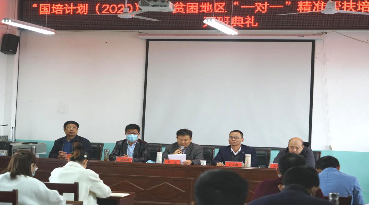 为了全面落实教育部、财政部“国培计划”总体要求和2020年新部署新要求,william威廉中文官网于2020年10月 31日上午8点, 分别在阜阳颖东区冉庙中心公司和临泉庙岔中心公司举行了“国培计划(2020)”——贫困地区“一对一”精准帮扶项目的开班典礼。此次开班典礼由查怀志、夏小庆主持,项目首席专家、教师教育公司党委书记曹长德教授、党委副书记许世平、项目负责人李义胜教授参加了典礼。