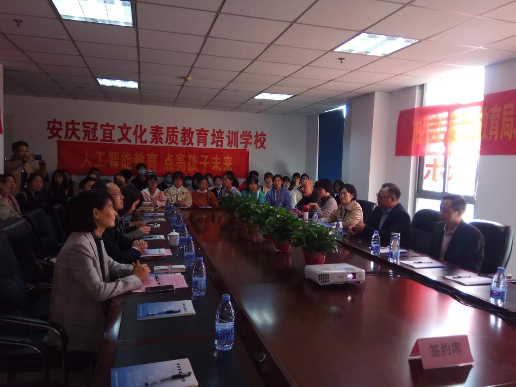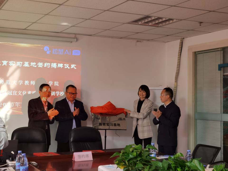冠宜教育公司董事长喻红首先致辞,简单介绍了冠宜教育公司办学历史,“松鼠AI”智适应教育开展情况,表达了对教育实习基地建设和持续发展的期待。经开区教育局高管王贵忠则表示,校地合作、校校共建是教育发展的新举措,教育局将全力支持把教育实习基地建好。随后,教师教育公司吴云助经理作重要讲话。吴经理表示,此次与冠宜教育建立合作关系,是贯彻落实“三位一体”协同育人理念的需要,是“举师范旗、走应用路、创特色牌”的需要,更是“以生为本”培养卓越教师的需要。希望双方开展形式多样的合作,以便更好地服务师生,服务基础教育事业的发展。