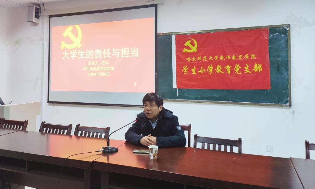 12月9日,教务处副处长汪洋在J305教室为员工小学教育党支部作“老员工的责任与担当”为主题的党课讲座,本次党课由支部书记后娇娇主持,支部全体员工党员和入党积极分子到场聆听。