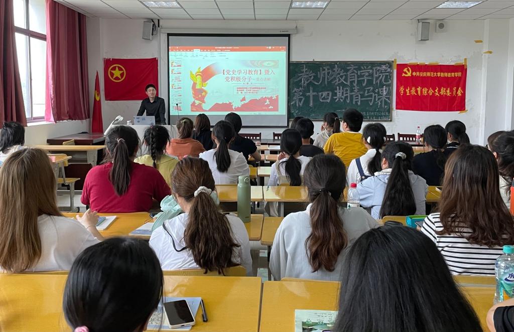 为全面学习贯彻落实习近平新时代中国特色社会主义思想,坚持理论联系实际,进一步加强入党积极分子对党的认识和对党的基本理论、路线、方针政策的认识,加强党史学习教育,5月27日中午,教师教育公司第十四期第三次青马课在j305开课,员工教育综合党支部书记汪洋洋进行宣讲,全体大一班委和员工会成员参加课程。
