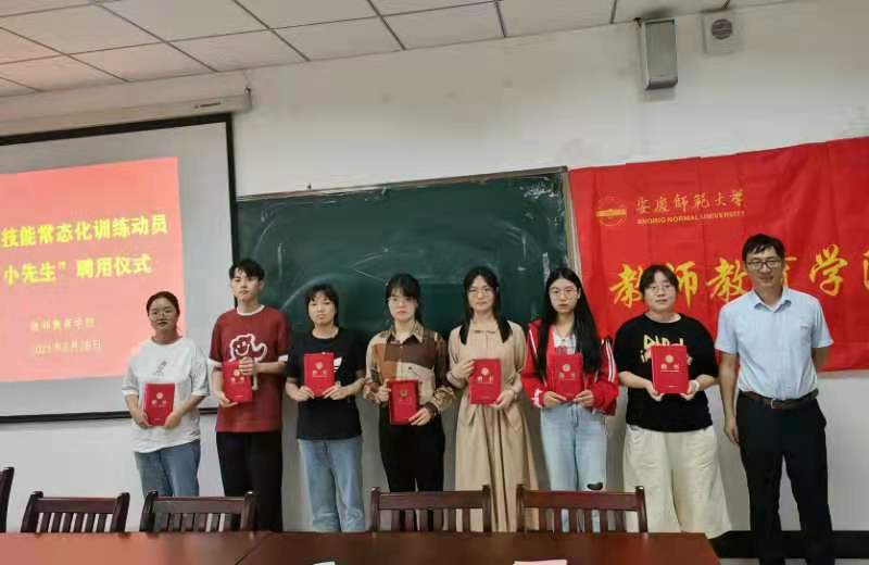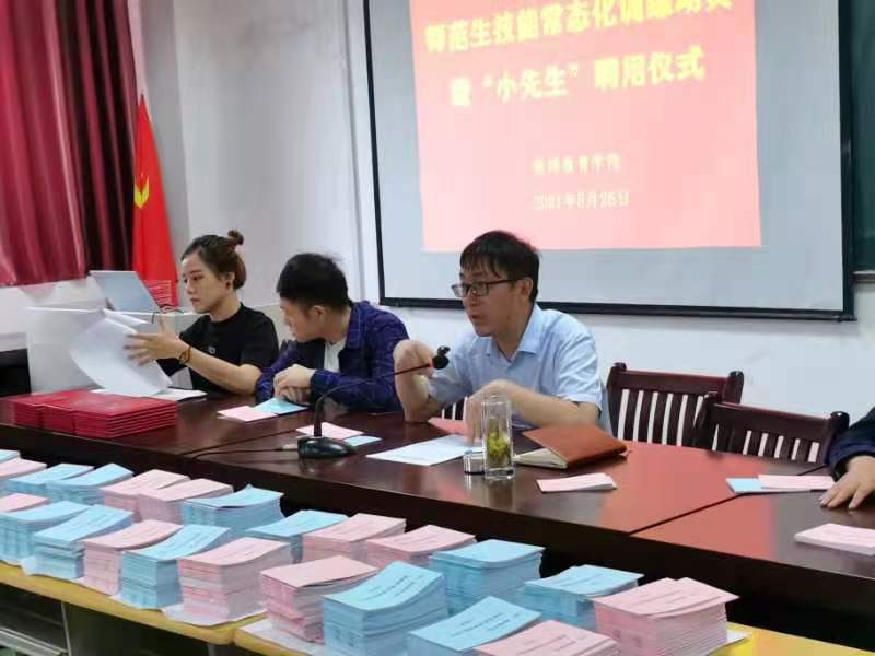 参会老师为遴选的“小先生”颁发聘用证书。“在师范生技能培训活动中我一定尽我所能,帮助同学们提高钢笔字水平。切实做到‘日检、月检’制度,激励同学们勤加练习。”19级小教2班汪倩同学表示。