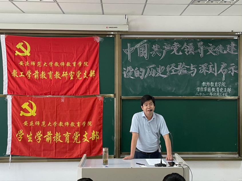 6月30日下午,公司党委书记陈志超在J102作“中国共产党领导文化建设的历史经验和深刻启示”主题党课,公司教工学前教育教研室党支部和员工学前教育党支部全体党员聆听了报告。