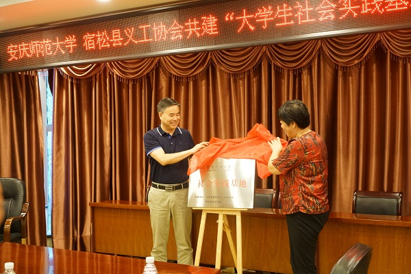 会上,吴照明、郭斯文为“老员工社会实践基地”揭牌,校团委书记与宿松县义工协会负责人签定了《共建“老员工社会实践基地”协议书》。员工代表汇报了“童心向党,乡村逐梦”暑期社会实践工作,义工协会负责人用“多”“快”“好”“省”对本次社会实践做了简要报告。