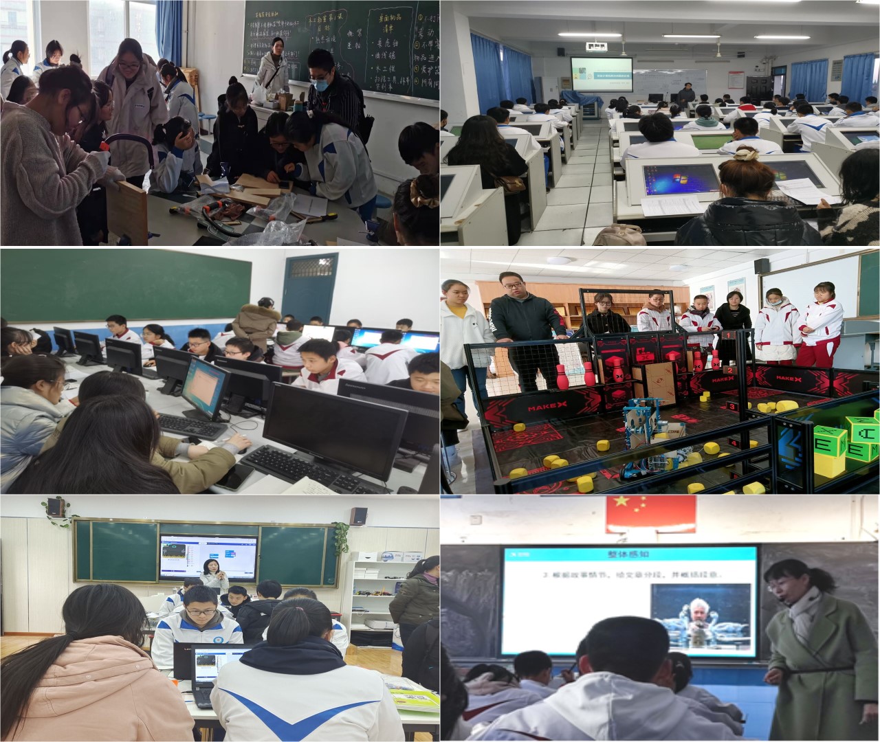 石化一中教导处副主任、信息中心主任何钧军老师全程跟进,精心策划,为公司研习师生奉献了多场精彩示范课。何钧军老师带领大家观摩通用技术课堂,通过任务驱动教学方法,引领员工们在“学中做”、“做中学”,切实体会技术实践课程的魅力。蒋丰老师在高中《体验计算机解决问题的过程》教学示范课上,通过“记忆力测试”游戏程序,设计问题分析、算法描述、程序实现等活动环节,带领员工们体验计算机程序解决问题的一般过程。毕慧老师从认识磁盘、文件、文件夹,分组浏览文件,了解文件属性和管理文件等几个方面开展初中信息技术课程教学。韩凌老师在西区组织开展机器人示范教学,研习师生和中员工一起认识机器人构件、组装机器人、调试机器人。俞婷老师在东区组织开展创客教育示范教学,通过编写程序控制小夜灯和声控灯。李瑶老师则以《动物笑谈》为题,结合启发式和任务驱动式教学方法,奉献了一场非常精彩的语文智慧课堂。