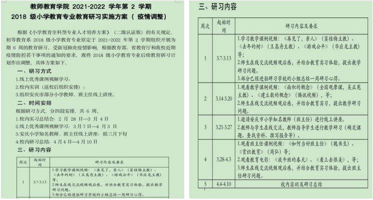按照人才培养方案规定,2018级小学教育专业本学期将完成教育研习任务,原计划在 2020 年3月7日至4月10 日进入各小学开展研习活动。然而受疫情影响,研习中断,初等教育系第一时间调整研习方案,小教专业七名专职教师主动对接毕业班同学,分别从思想教育、专业交流、生活解困、职业指导等方面,通过召开主题班会、线上交流座谈、毕业设计讨论会等方式,积极帮助毕业生解决疫情防控期间思想困惑和学业困难,对毕业生进行教育关怀。