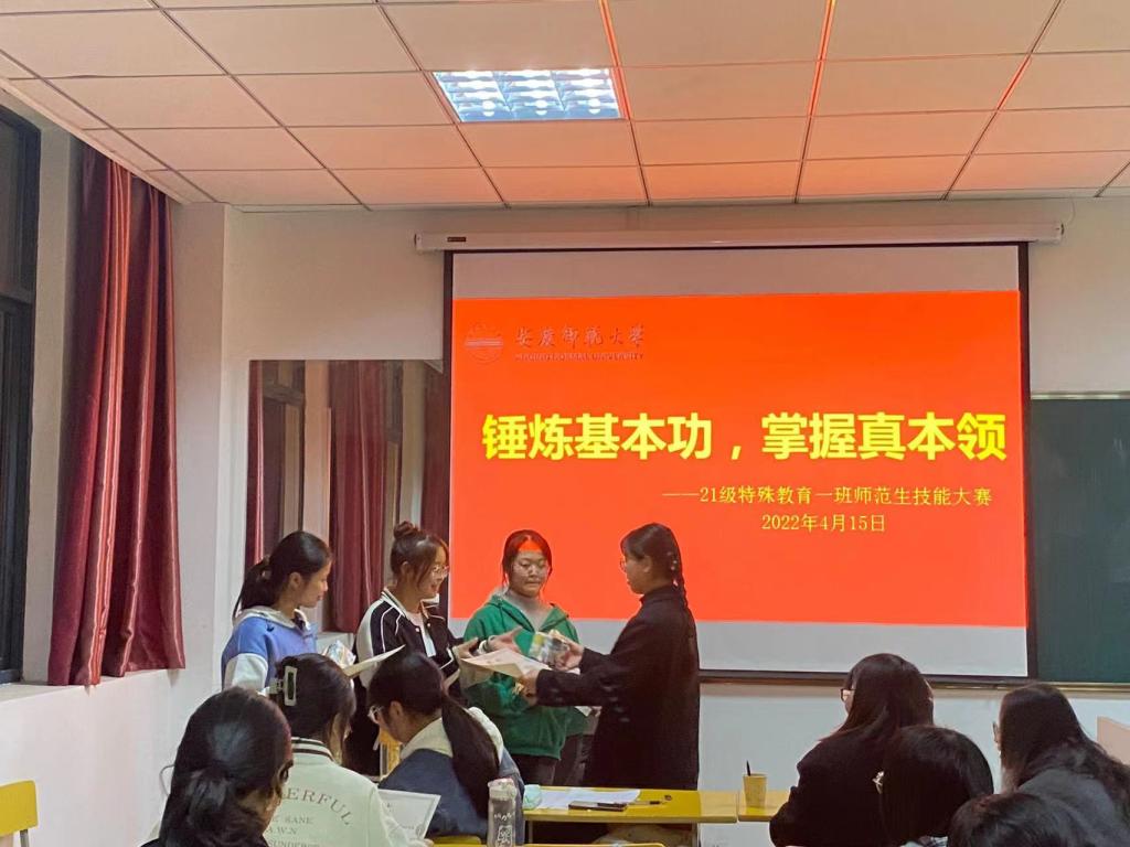 为了提高特殊教育专业员工的教学基本功,培养卓越特殊教育教师,2021级特殊教育专业于4月15日在J409举办了第一次师范生技能比赛。比赛由刘文丽和朱培老师,徐俊琳和徐可莹学姐担任评委,由辅导员潘日余老师主持。