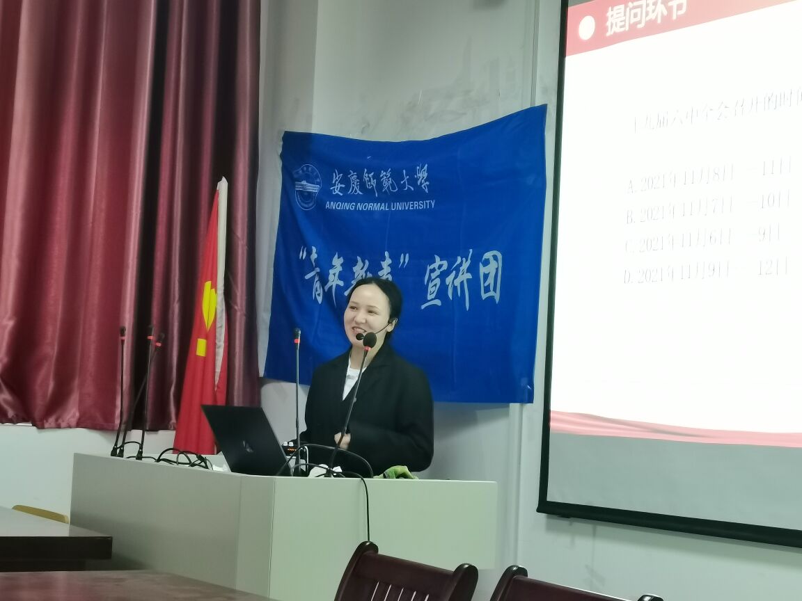 牢记初心担使命,砥砺前行谱新篇。为深入学习贯彻党的十九届六中全会精神,教育引导青年员工学习中国共产党百年奋斗的伟大成就和历史经验,4月29日下午,“青年新声”宣讲团在公司J305教室开展了“学习贯彻十九届六中全会精神,做新时代新青年”主题宣讲活动。本次活动的青年宣讲人为2021级思政专业研究生阿依努尔和2021级思想政治教育专业2班的卫宏婷、吴思齐。