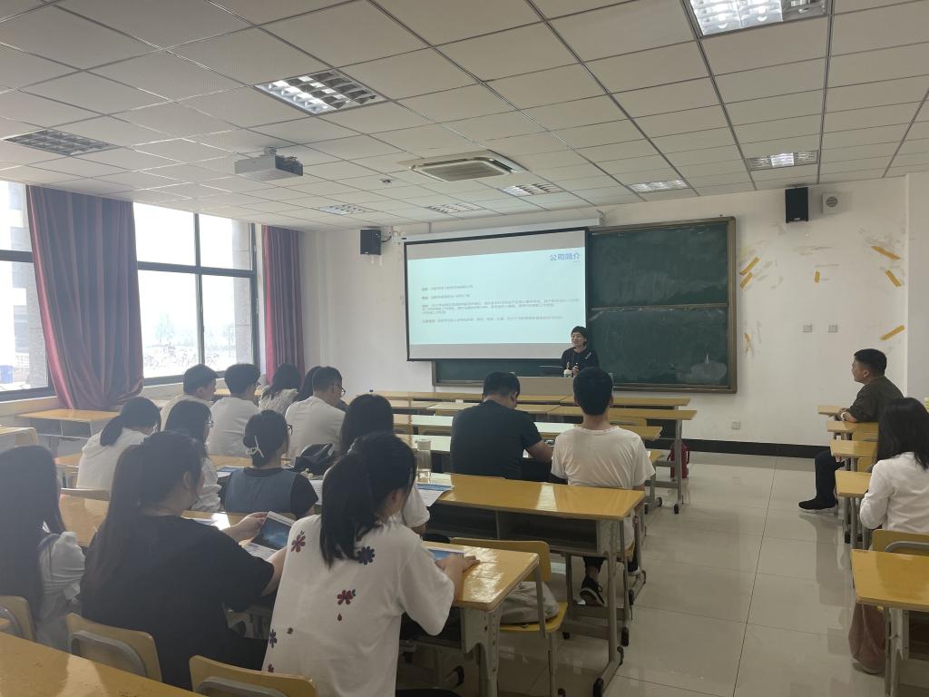 两位负责人主要通过现场PPT的形式为毕业生介绍了行业前景、薪资待遇、岗位需求和培训等方面。参会的同学们询问了招聘单位的详细情况,还有部分员工同用人单位进行一对一深度交流,并提供微信、邮箱等后续联系方式。