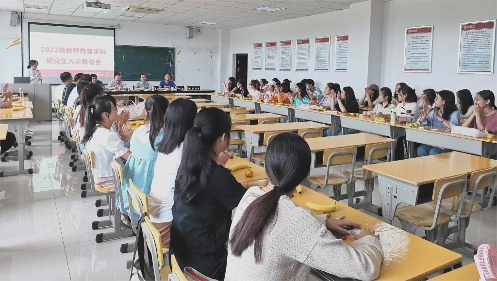 新生代表张共辰鼓励同学们积极进取,为将来立足于教育事业打下扎实的基础。2021级研究生代表以及研究生会代表张军晓、丁雅倩为同学们分享了教师教育公司研究生基本情况和学习生活。辅导员薛珊老师带领2022级全体研究生学习《研究生手册》的相关内容,并希望研究生能够锐意进取,做好合理的学习和职业规划。