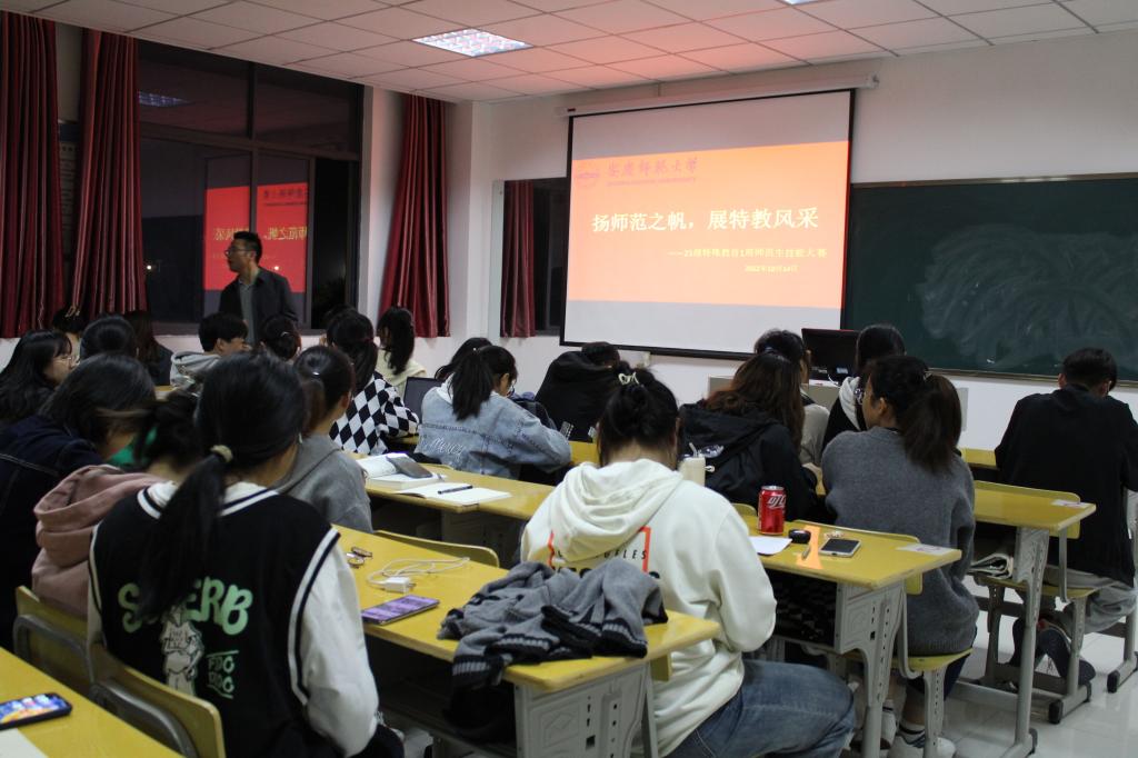 为深入学习贯彻习近平总书记给北师大“优师计划”师范生回信精神,增长传道授业解惑本领,10月14日晚,特殊教育专业在J409开展了教学技能训练。此次训练坚持“以赛促教、以赛促学”,训练由潘日余老师主持,邀请特殊教育教研室老师担任评委。除21级特殊教育专业全体员工外,还吸引了部分22级特殊教育专业员工。