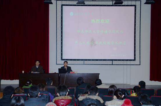 12月8日下午2点30分,华东师范大学传播公司经理、博士生导师严三九教授在安庆师范公司图书馆西报告厅,为教育公司广播电视新闻专业和文公司新闻学专业的师生做了《漫谈新媒体时代的信息失实》的专题演讲。