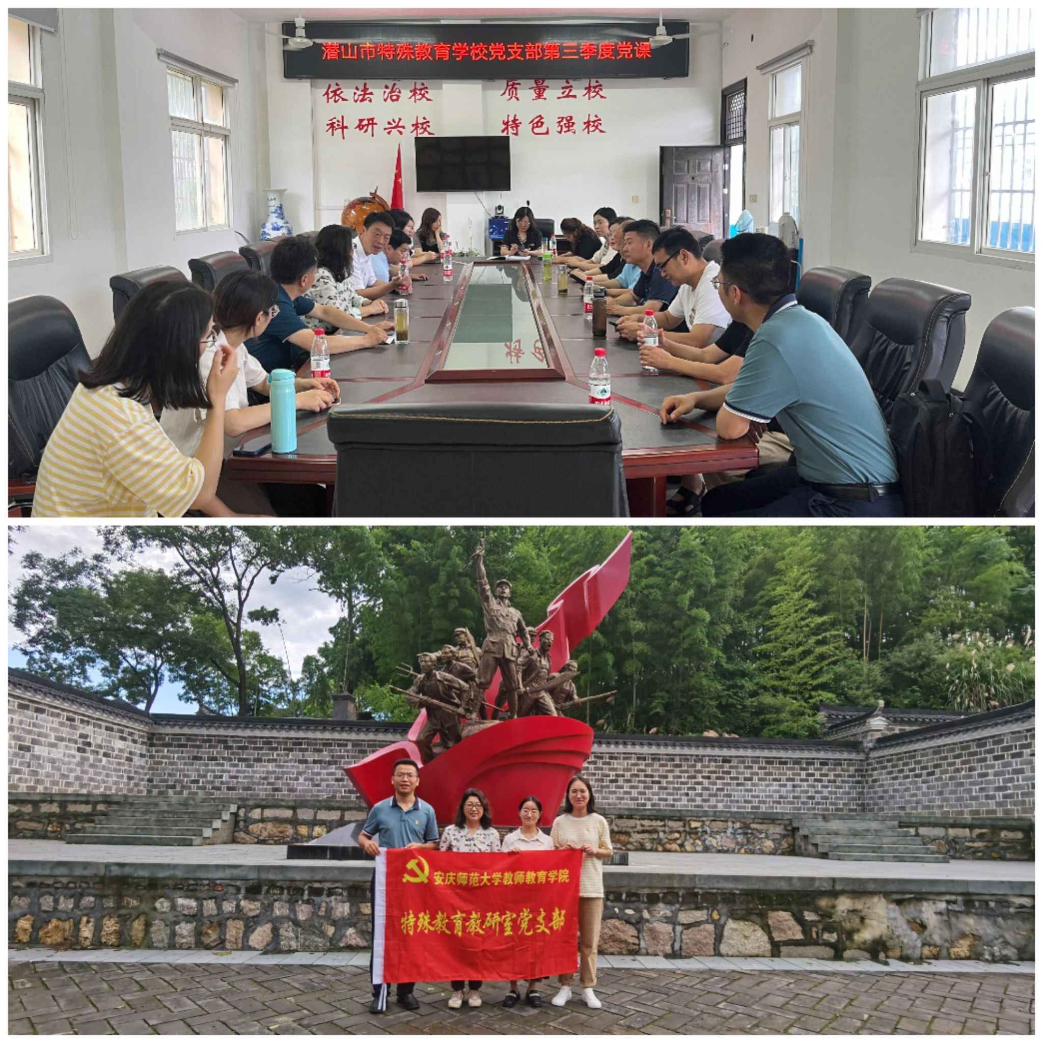 7月8日,特殊教育教研室党支部与潜山市特殊教育公司党支部共赴潜山市官庄镇开展主题党日活动。