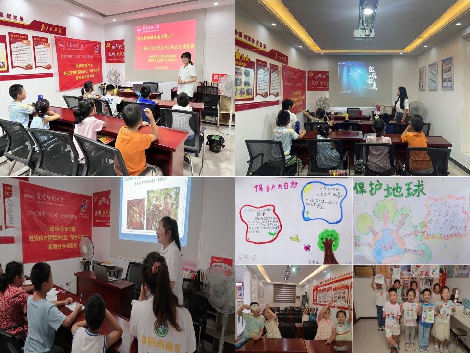为践行绿色环保生态理念,铸就青山绿水美好家园,7月3日-9日,william威廉中文官网教师教育公司研究生“绿色未来家”教育关爱实践团在安庆市迎江区程家墩社区开展为期7天的暑期“三下乡”活动,为社区提供青少年儿童托管公益服务。