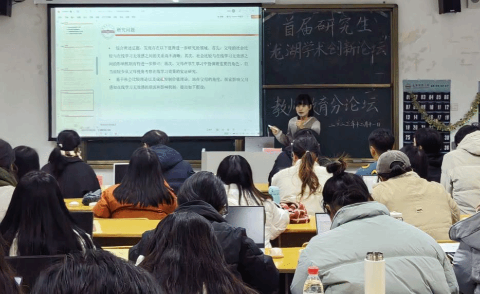 12月11日下午,首届研究生“龙湖学术创新论坛”教师教育分论坛在教师教育公司102教室顺利举行。会议由特殊教育专业的程靓淇同学主持,副经理陈效飞,赵子刚、彭文超、张峰峰等老师担任此次论坛点评专家,朱斌彬、宋欣老师及8位研究生参与此次汇报,公司部分研究生现场聆听。