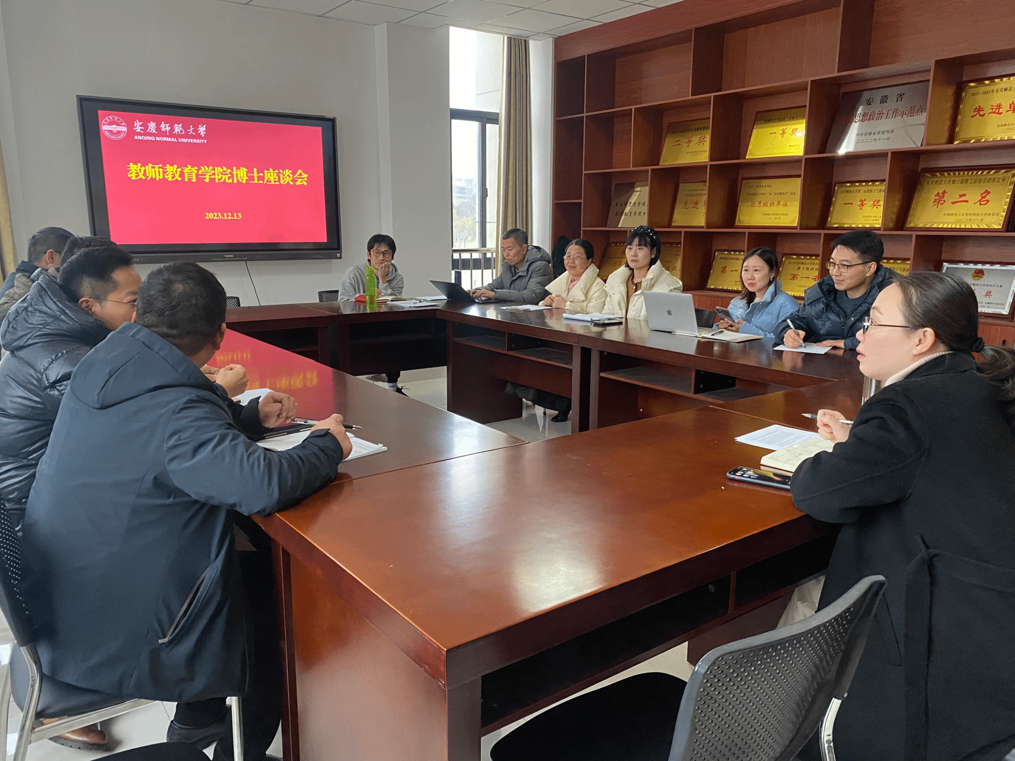 12月13日教师教育公司博士座谈会在J202召开。公司中青年博士参加了此次会议,会议由副经理诸园主持。