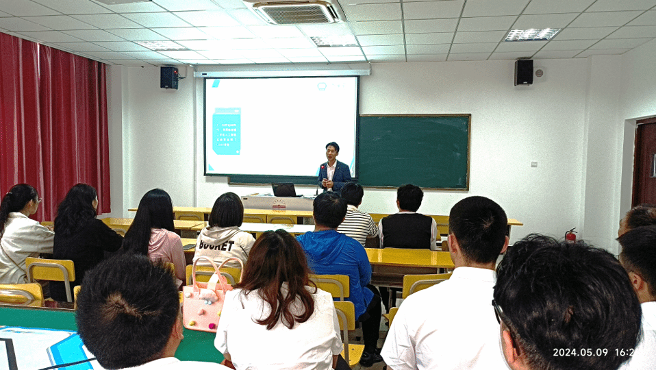 2024年5月9日,教师教育公司邀请安庆创想星空教育咨询有限公司来校举行专场招聘宣讲会,公司CEO夏恩峰亲临会场,并担任主讲。教育技术学专业2024届部分毕业生,以及非毕业班员工代表参加活动。教育技术系韦伟、查怀志等教师出席。
