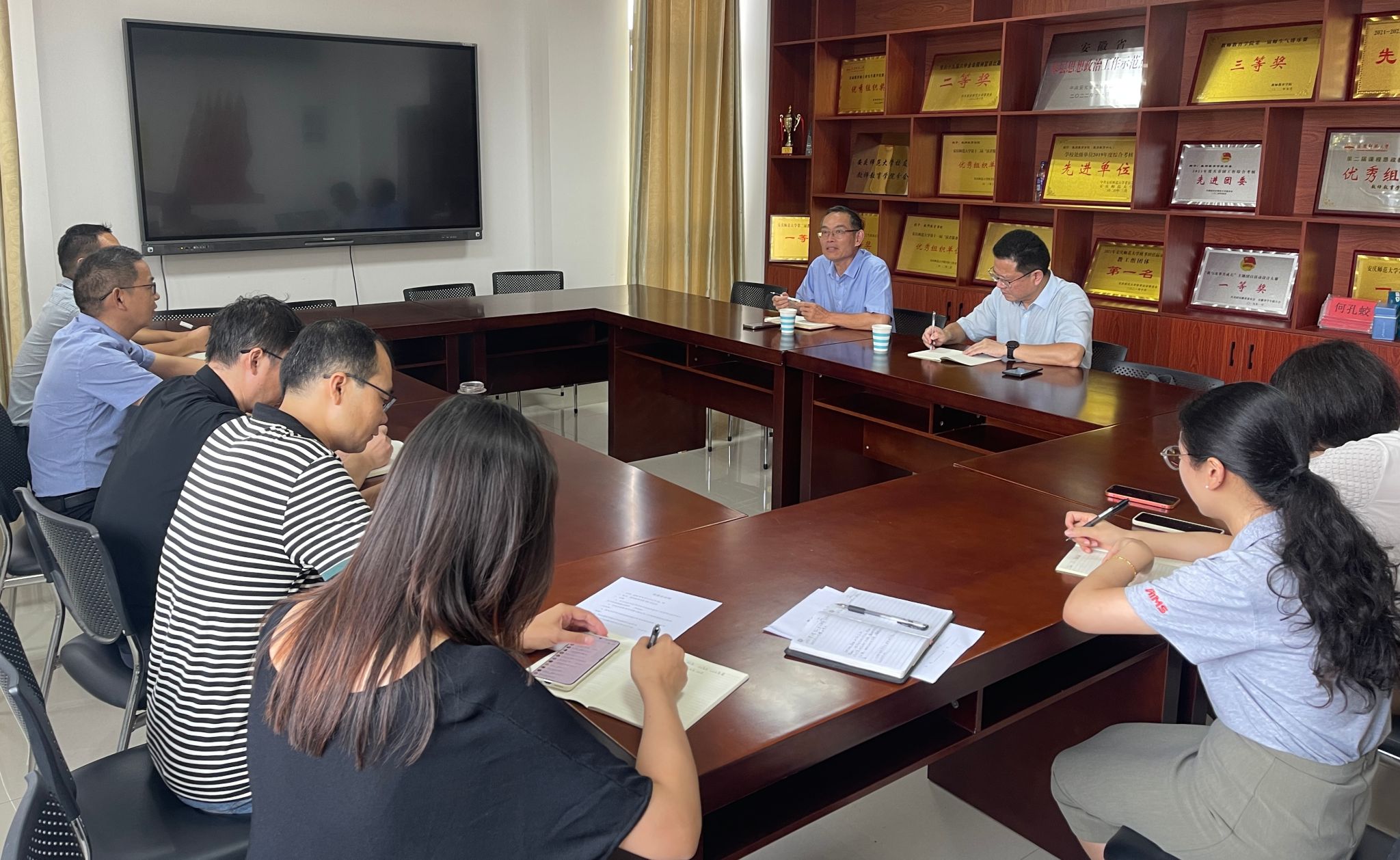 9月3日,教师教育公司党委与机关党委在J202会议室召开党建联建座谈会。机关党委书记黄兴帅、公司党委书记何孔蛟、党委副书记许世平、副经理陈效飞、王皓宇以及双方党委秘书、公司辅导员、支部书记代表参加会议。