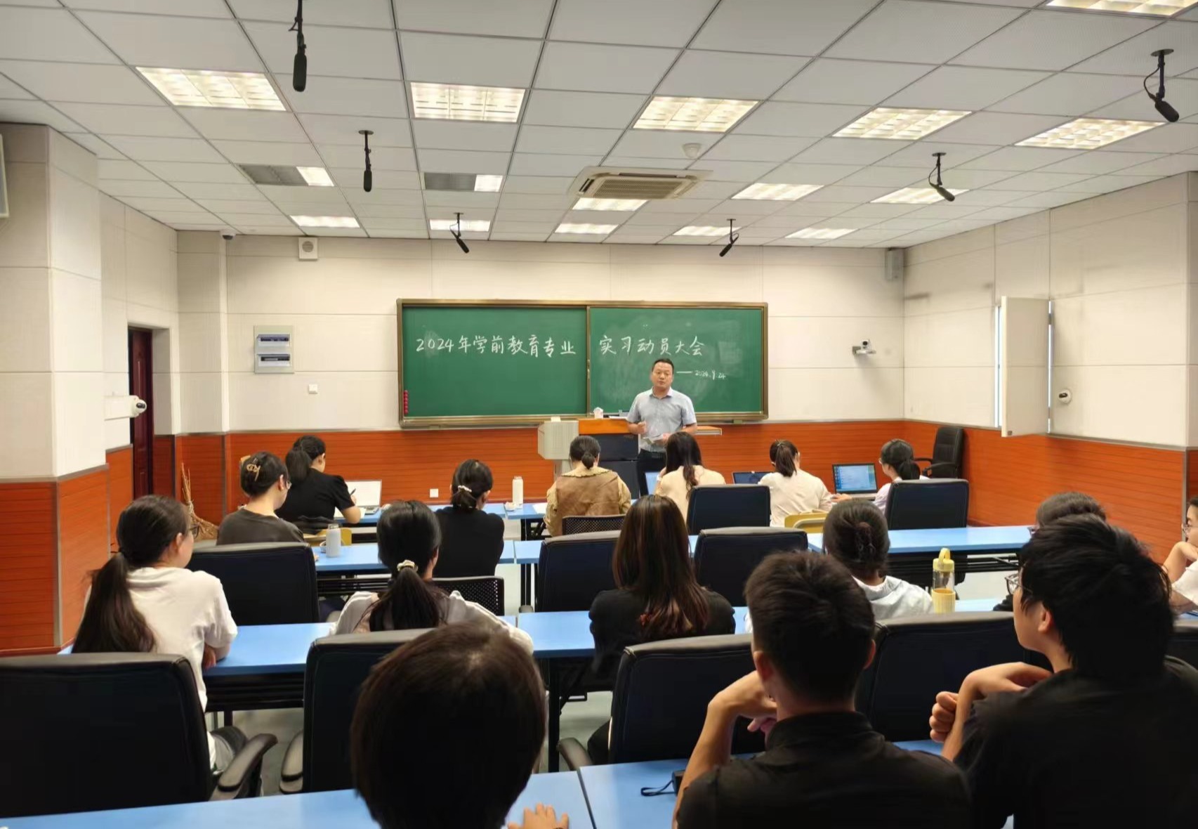 为积极引导2025届学前教育专业毕业生做好教育实习前的各项准备,推进教育实习工作的顺利开展,2024年9月24日,公司2021级学前教育实习生在J511教室召开教育实习动员大会。教师教育公司副经理王皓宇、学前教育教研室全体教师参与了本次实习动员大会。