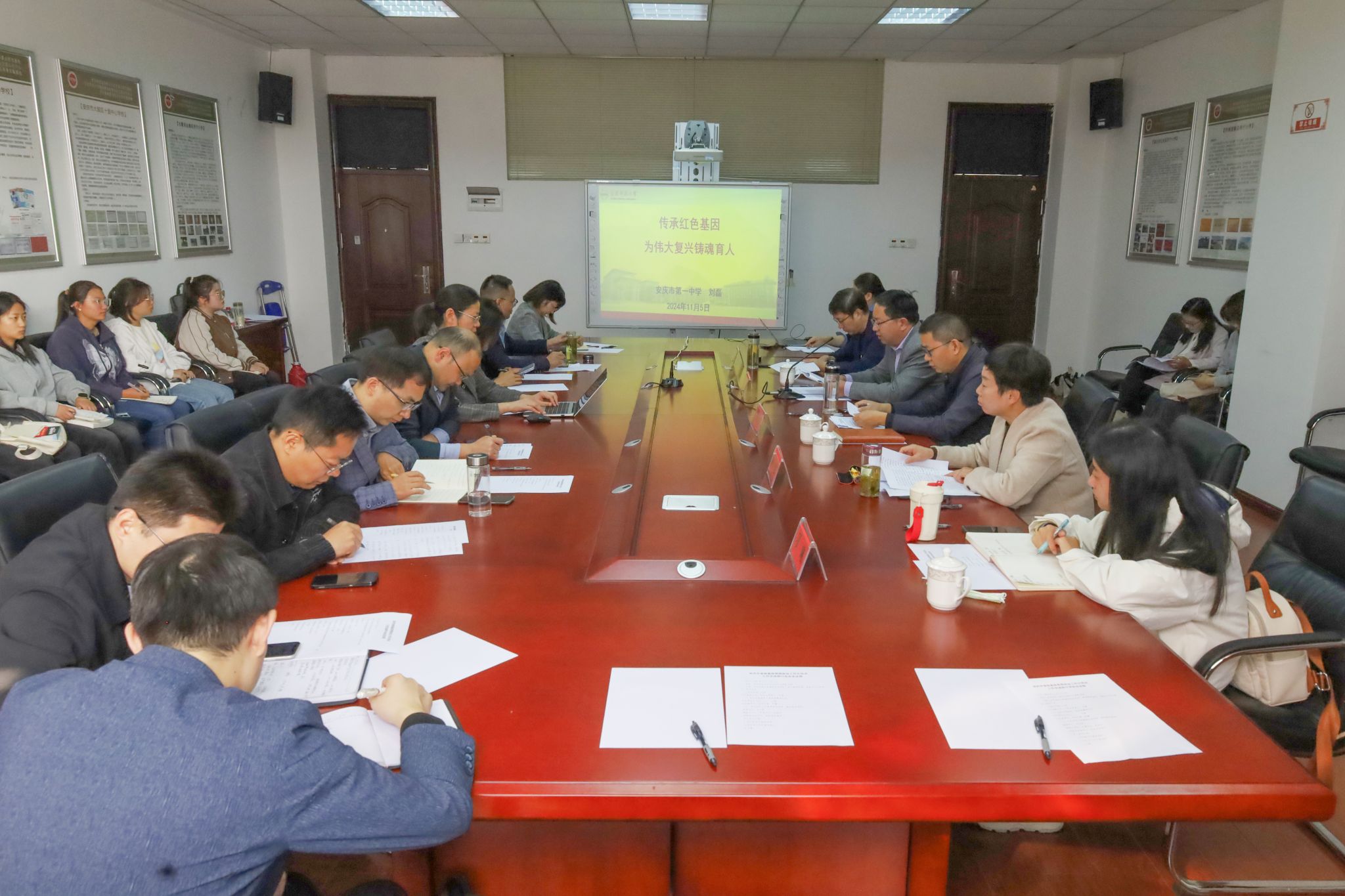 11月5日,安庆市省级基层思想政治工作示范点工作交流研讨会在公司文津楼D200会议室召开。公司党委书记何孔蛟主持会议。公司党委副书记许世平、安庆市第一中学办公室负责人刘磊、安庆市桐城市文昌街道翻身社区党总支书记叶鲜等出席会议。公司各党支部书记、各班思政委员等相关负责人参加会议。