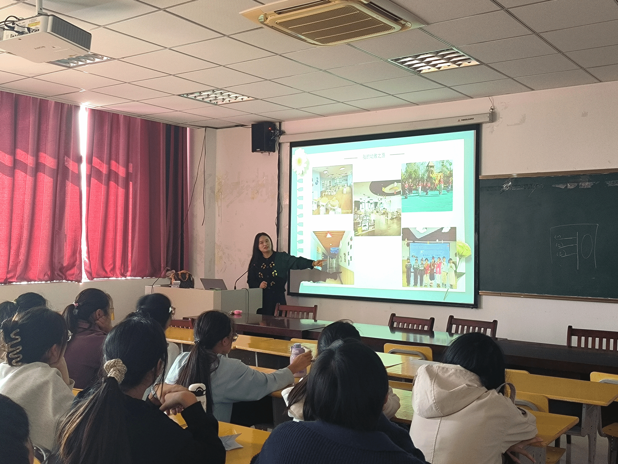 2024年11月11日,学前教育专业优秀毕业生、六安市金安区城北新城幼儿园园长王立平应邀做客红色园丁大讲坛,作题为“陪伴幼儿,治愈自己”的讲座。讲座由学前教育教研室主任王颖莉主持,该院部分教师及80余名学前教育专业本科生到场聆听。