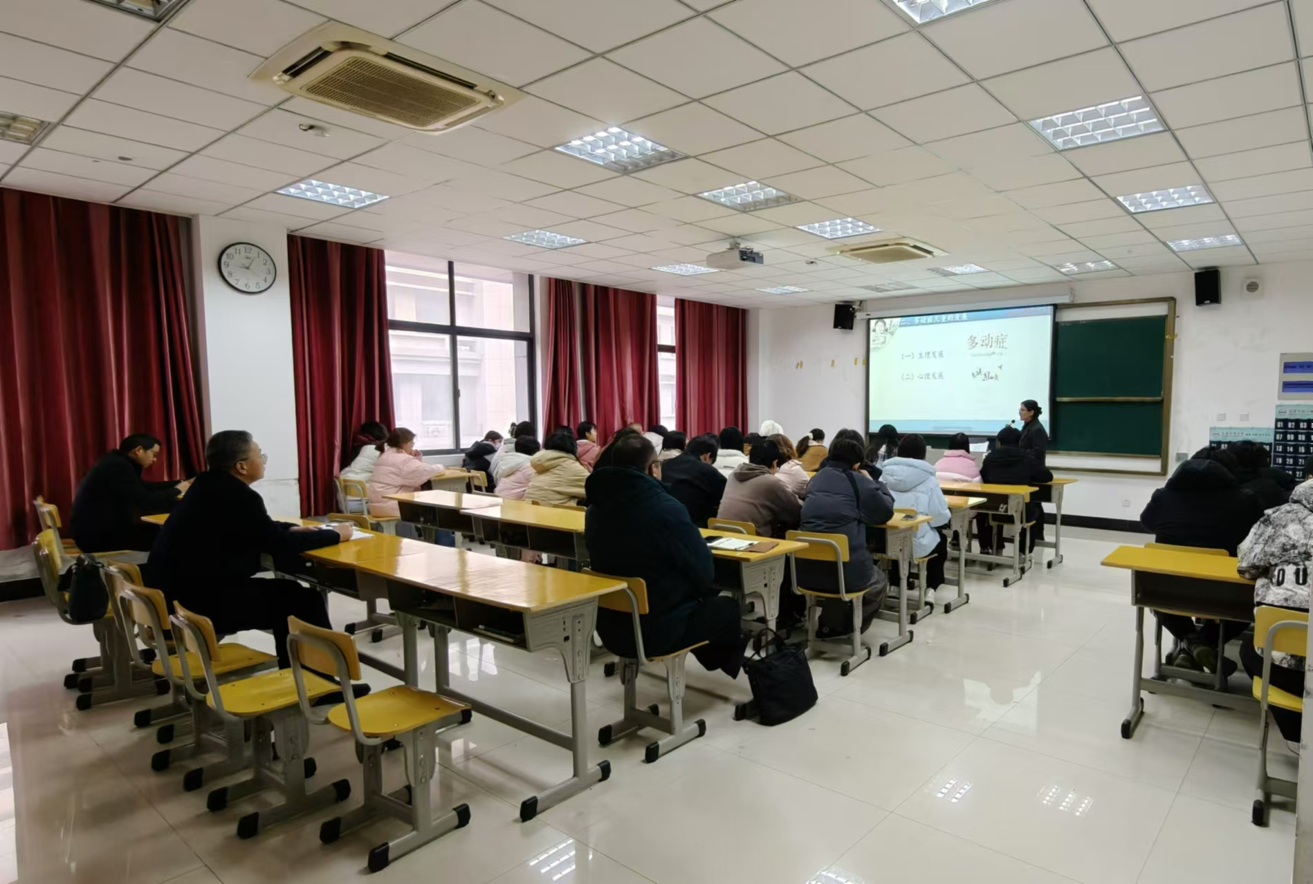 李福华认真听取了刘文丽老师的《特殊教育概论》课程,全面了解了课堂教学组织、教学方法与教学手段运用、师生互动以及员工上课状态等情况。课后,李福华与授课教师进行了充分交流,对授课情况予以肯定,鼓励该教师进一步优化课程设计,创新教学方法,强化员工创新精神培养,不断提高课堂教学成效。