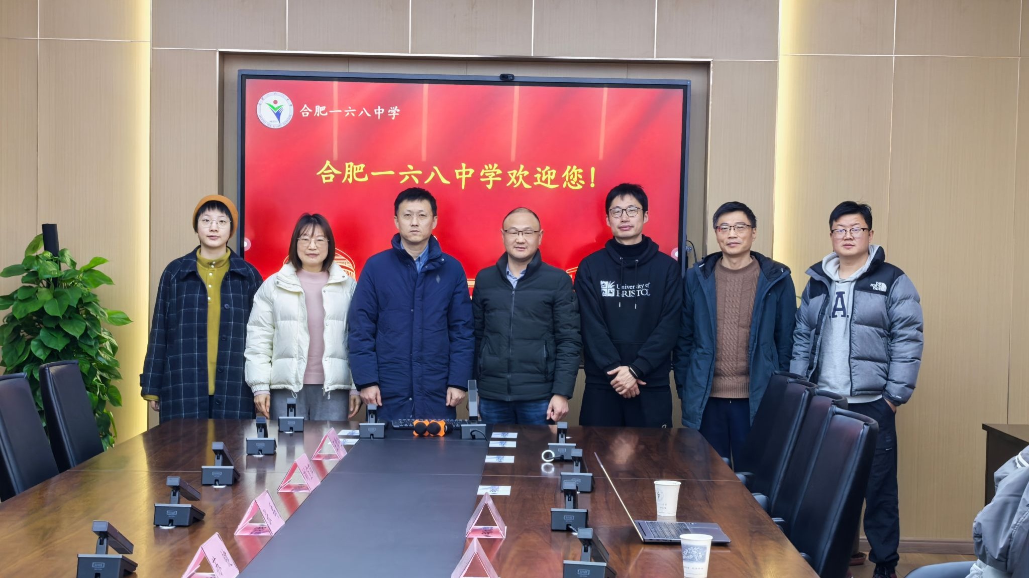 第一站是中国名校合肥一六八中学,副董事长苏键、教务处主任张禹、技术组骨干教师马永青、刘宜萍、吕旁顺、王玉峰、隗祎、夏然然等参加调研会。会上,金牌教练、技术组组长马永青做主题报告,从“美在课程”“技压群雄”“身心共健”等三个方面详细阐述合肥一六八中学近几年在信息学竞赛、机器人大赛、人工智能大赛等三大领域开展的活动和取得的成绩。韦伟、朱斌彬对一六八中学取得的成绩赞叹不已,对技术组专任教师的敬业精神和专业能力非常敬佩。认为在当前高考背景下,高中能够着眼于员工综合素质培养,尤其是动手实践能力和科学创新精神养成是公司主动作为,富有远见的正确决策。大力推动信息技术和人工智能在中小学的课程教学、社团活动、学科竞赛中的实践,既是对数智时代到来的有力呼应,也是信息技术赋能教育、人工智能赋能教育的有力注解,更是为员工各学科核心素养的培养提供了有力支撑。