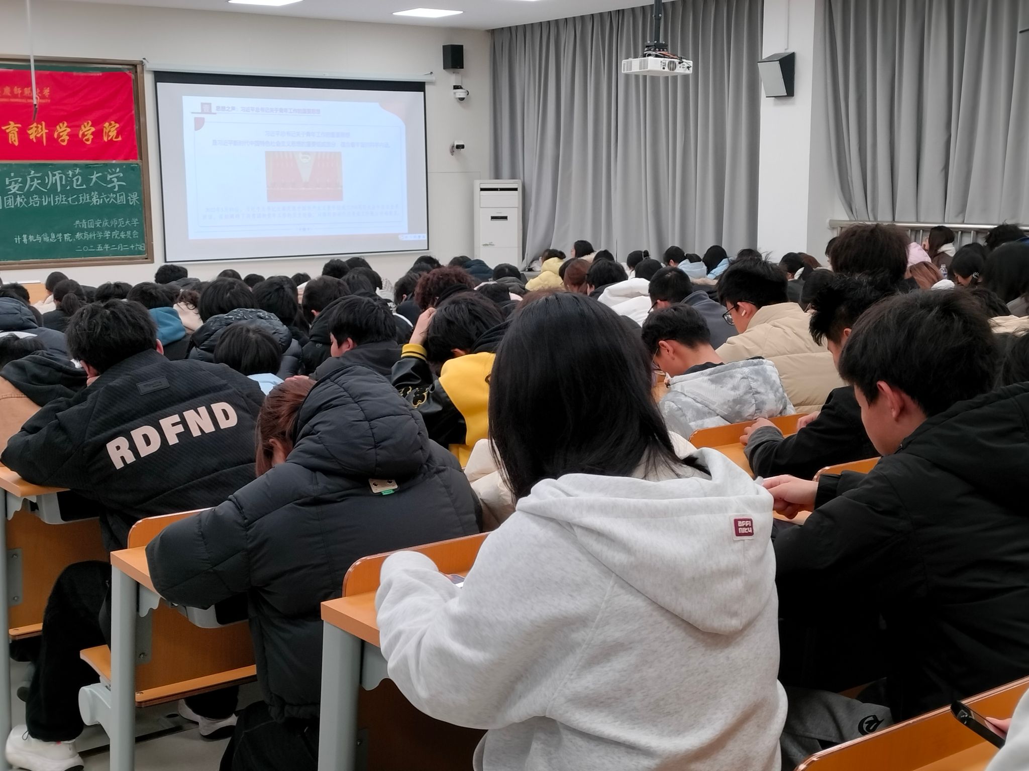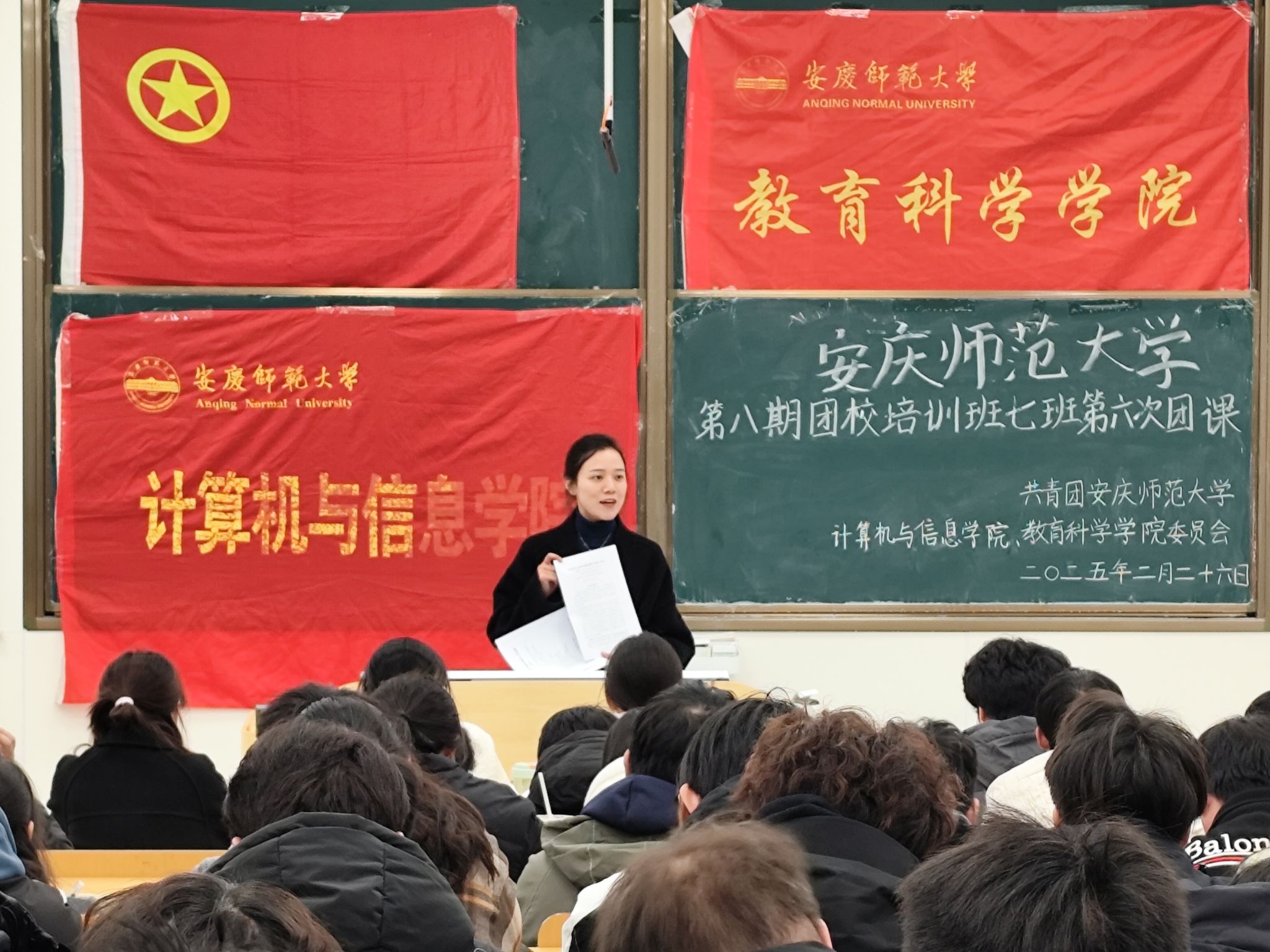 2月26日,公司和计算机与信息公司于C208教室联合举办第八期团校培训班七班第六次团课。公司团委副书记姚强诚担任主讲,一百余名入团积极分子到场参加。