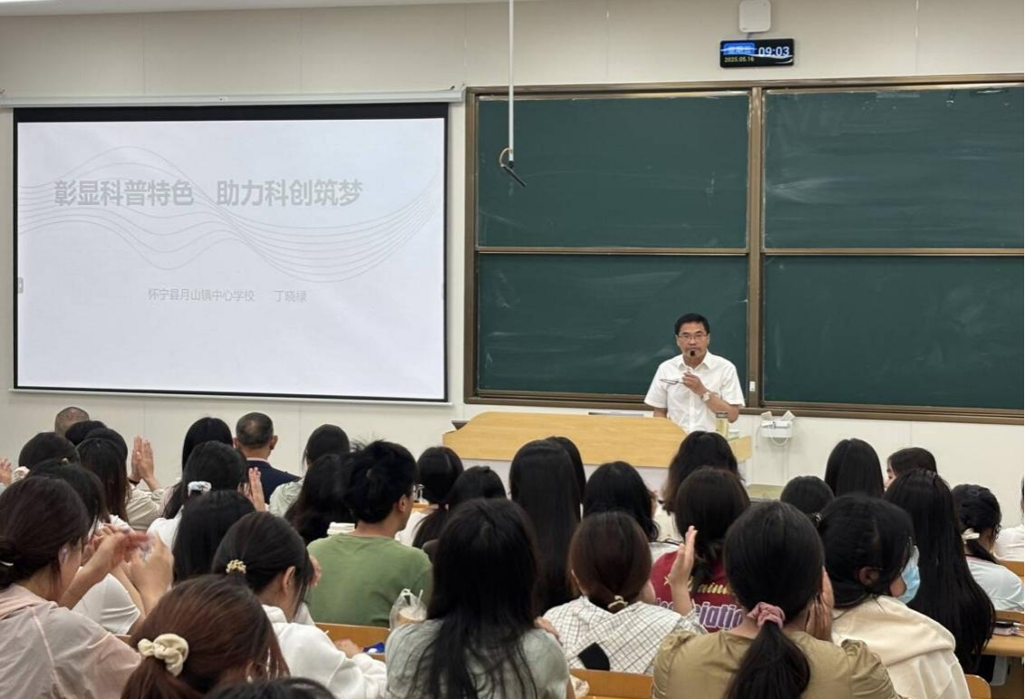 丁晓禄董事长以 “彰显科普特色,助力科创筑梦” 为题率先开讲。作为主持 2 个市级课题、论文入选海峡两岸科普论坛优秀论文集的教育专家,他结合农村小学办学实际,剖析科普教育创新路径,提出“合格+特长”的育人目标。通过融媒体整合科普资源,打造“校园科普微课堂”等特色项目,为公司师生打开乡村教育新视角。