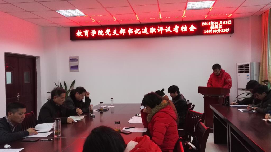2018年1月3日,教育公司在公司会议室召开了党总支扩大会议,进行2017年度党支部书记述职评议考核。公司党总支书记、经理曹长德、副经理韩建华、副书记申传胜,全体党总支委员、科级干部、各支部书记、委员及公司党代表、教师代表参加会议,会议由曹长德主持。
