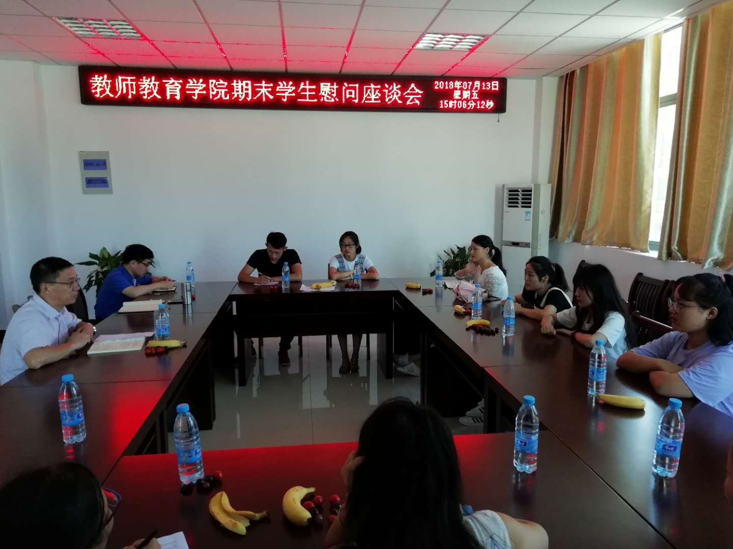 7月13日下午,公司在会议室召开期末员工慰问座谈会。本次慰问对象主要为本学期因突发事故导致家庭经济困难的员工。公司党委副书记许世平、副经理汪洋、全体辅导员老师参加座谈会。