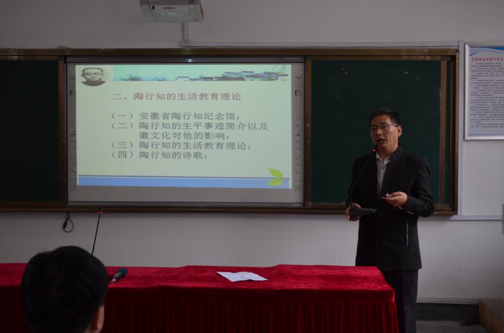 安徽陶行知纪念馆馆长凌文老师作了“立志做新时代行知式的好教师”的辅导报告。报告结合新时代教师要求,分析了陶行知生活教育理论和创造教育思想,条理清楚,资料详实,生动形象,对大家准确、深刻领会陶行知教育思想大有裨益。