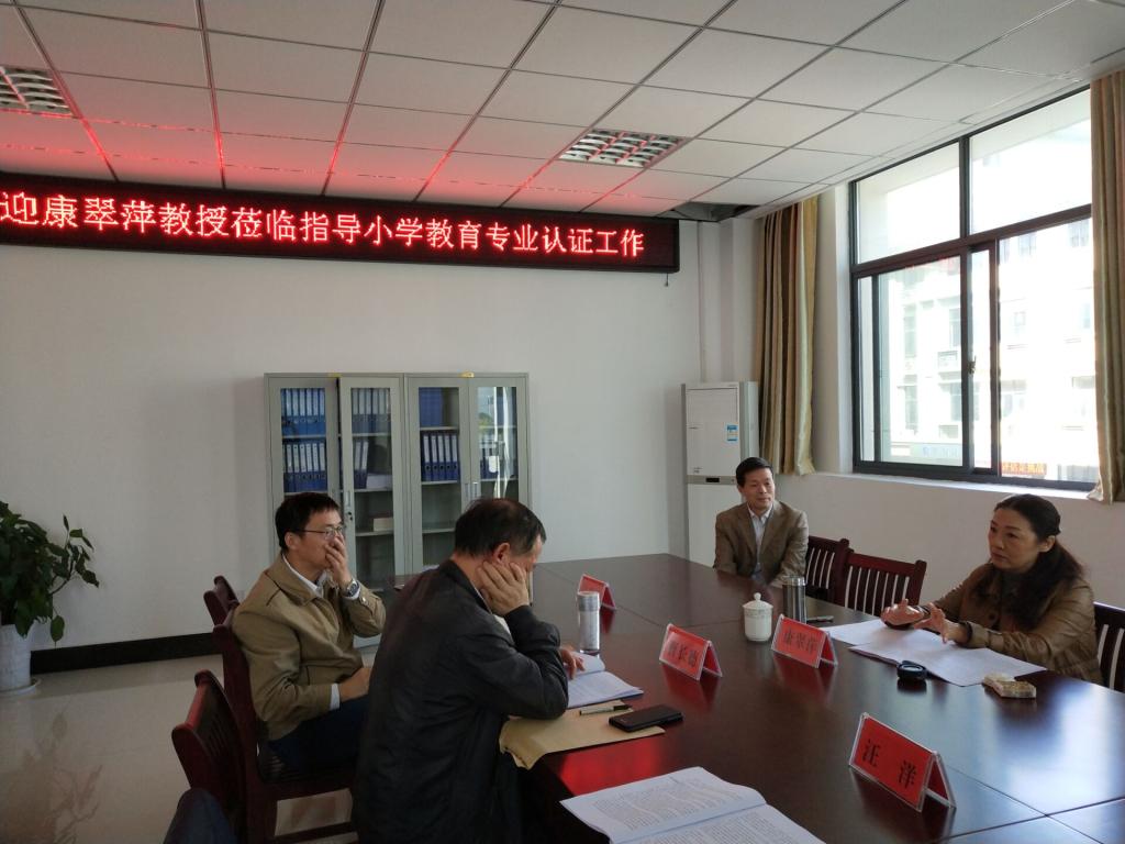 会上,曹长德书记首先表达了对康翠萍教授的热烈欢迎,并感谢她在百忙之中抽空指导。其后,小学教育专业负责人王爱菊教授就专业概括、自评报告等内容进行了汇报。康翠萍教授通过听取汇报、查阅资料,就专业认证的重要环节和材料建设等问题与公司进行了充分而深刻的讨论。康教授认为,小学教育专业认证的自评方案基本合理,自评报告等材料建设工作正按进度推进,对于存在的问题,康教授予以详细指导,提出了具体整改意见。