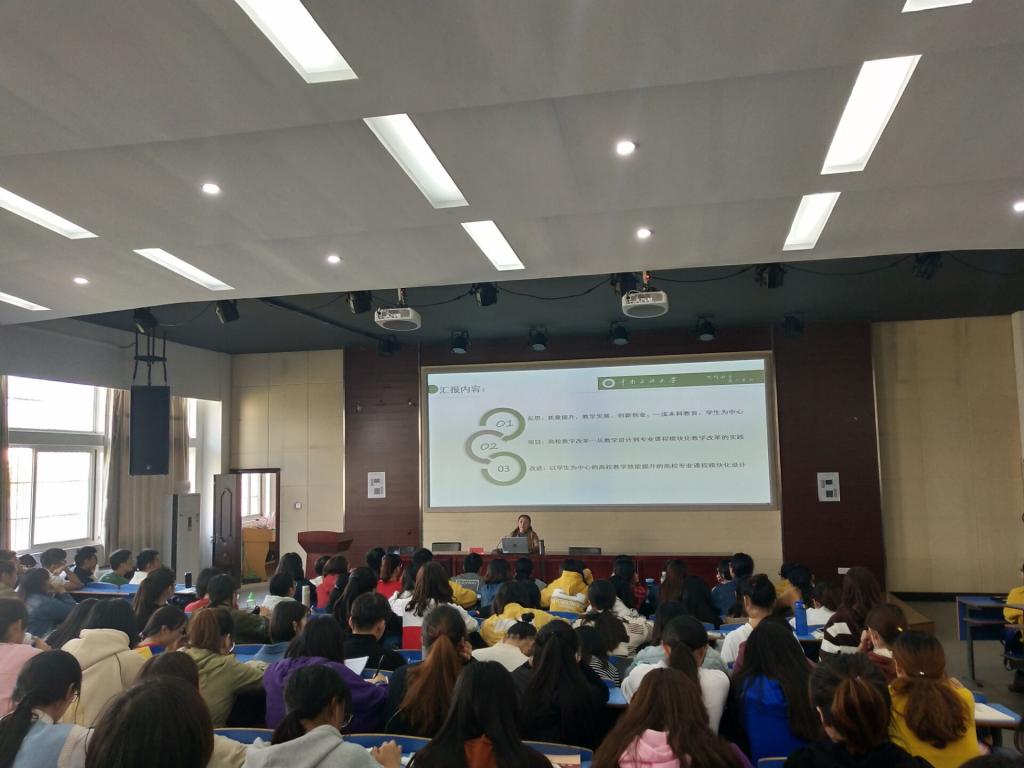 10月24日下午,中南民族大学教育公司经理、博士生导师康翠萍教授应邀在D111作题为“基于员工学习效能的本科专业课程模块化教学改革”的学术报告,报告会由教师教育公司汪洋副经理主持,公司部分本科生、硕士研究生和教师150余人参加报告会。