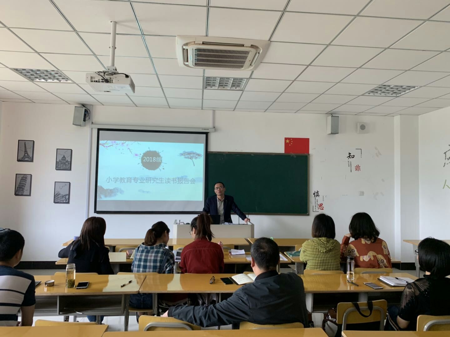 4月19日上午,18级小学教育专业硕士研究生在教师教育公司J217教室开展了一次读书报告会,王爱菊、张启树和李义胜三位导师到场聆听并进行指导。