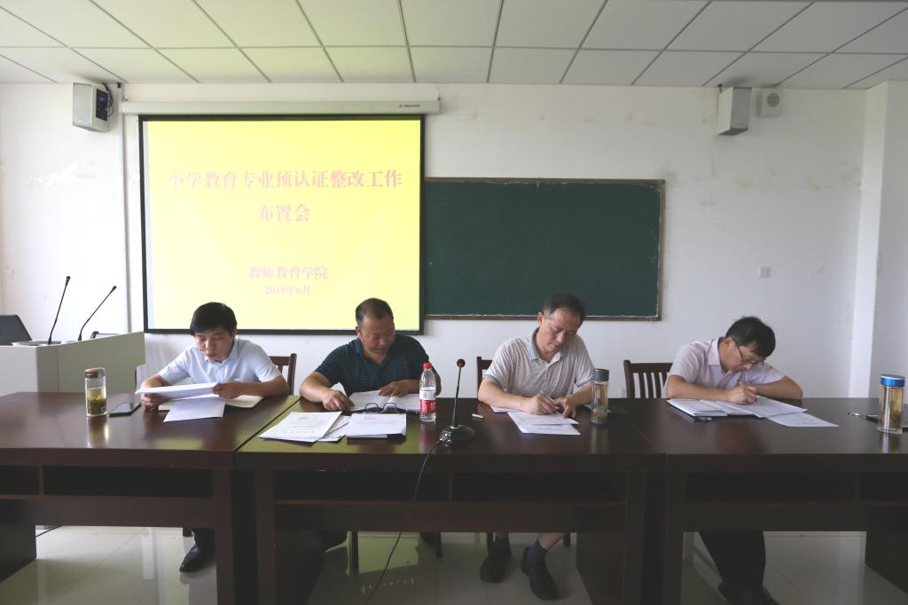 6月12日下午,教师教育公司召开小学教育专业预认证整改工作部署会。公司党委书记曹长德、经理吴云助、副书记许世平、副经理汪洋出席会议,小学教育专业全体教师、公司行政科室相关人员及辅导员参加了会议。会议由曹长德主持。