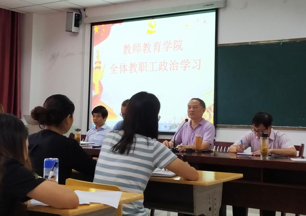 9月1日下午,教师教育公司全体教职工在J305教室召开政治学习会议。会议由教师教育公司经理吴云助主持,党委书记曹长德主讲。