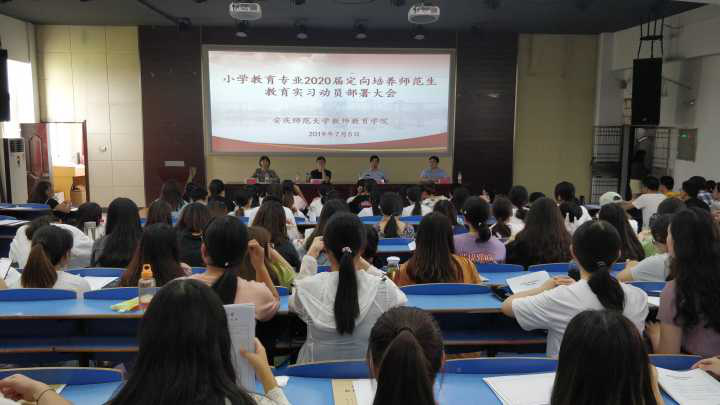 为贯彻《安徽省人民政府办公厅关于实施乡村教师支持计划(2015-2020年)的通知》和安徽省教育厅、安徽省机构编制委员会办公室、安徽省人力资源和社会保障厅、安徽省财政厅《关于定向培养乡村教师的实施意见》等文件的精神,公司于2016年秋季开始承担安徽省定向培养乡村教师的任务,首批141名师范生按照全科型乡村教师的培养规格进行定向培养。根据全科型乡村教师培养方案的要求,进一步完善“卓越化、开放型”教师教育体系,提高定向培养师范生的质量及其与生源地教师教育需求的适应度,教师教育公司于2019年3月开始启动首批定向培养师范生的教育实习工作。