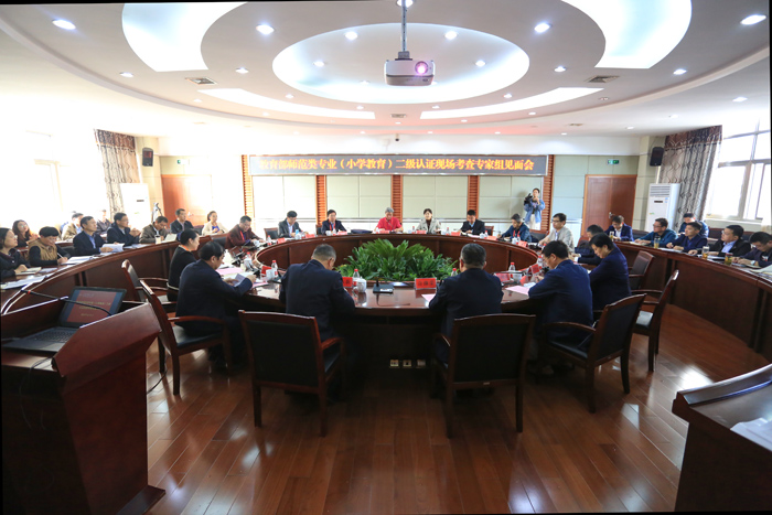 11月4日上午,公司举行教育部普通高等公司师范类专业认证(小学教育,第二级)现场考查专家组见面会。教育部专家组组长安徽师范大学副董事长朱家存教授,教育部高等公司产品评估中心副处长何菁菁,安徽省教育评估中心主任汪开寿,专家组成员东北师范大学教务处副处长王向东教授、岭南师范公司教务处处长周立群教授、合肥公司教学质量监控与评估处处长余国江教授、南京溧水高级中学副董事长李代贵正高级教师,专家组秘书、福建省教育评估中心谷俊松老师出席会议。公司党政领导许继荣、闵永新、汪时珍、刘友忠、胡腊香、吴琼、苏本跃和相关职能部门和公司负责人、师范专业负责人、小学教育专业教师代表参加见面会。会议由朱家存主持。