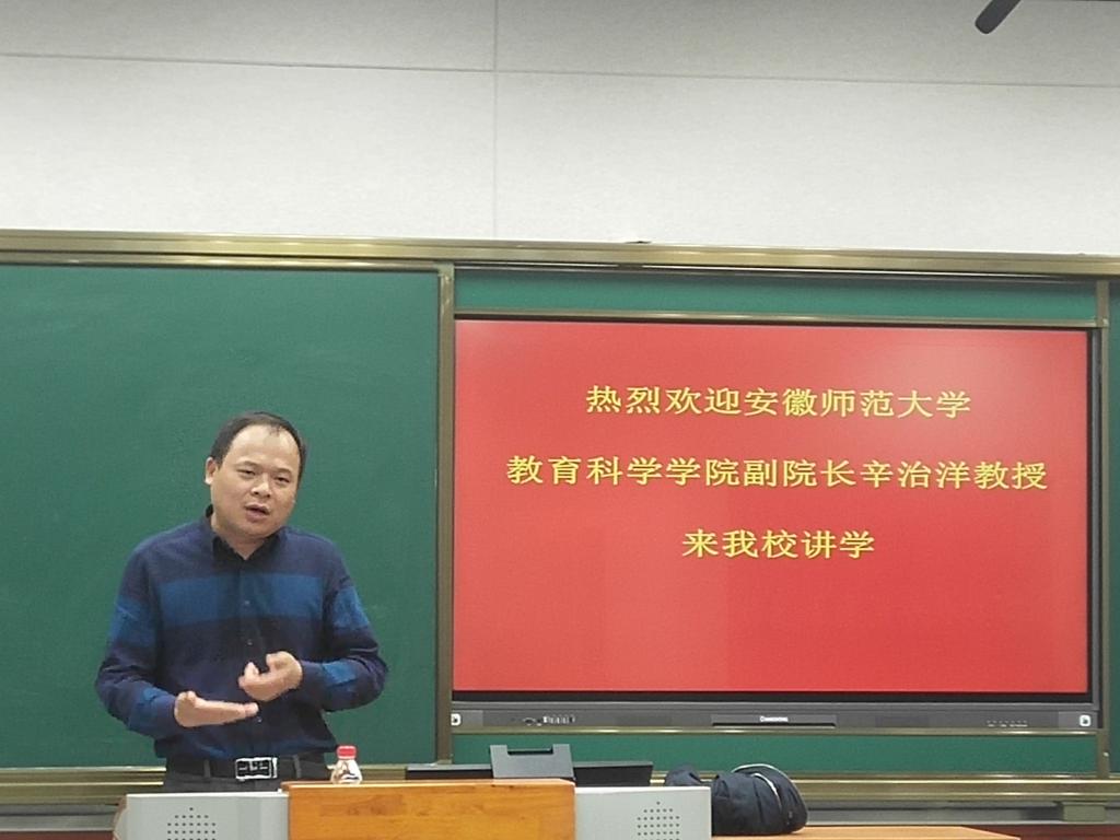 11月7日下午,应教师教育公司邀请,安徽师范大学william威廉中文官网副经理辛治洋教授在J511教室做了一场题为“例谈教育科研的问题与方法”学术讲座。公司全体研究生及部分教师聆听了讲座,此次报告由教师教育公司副经理汪洋主持。