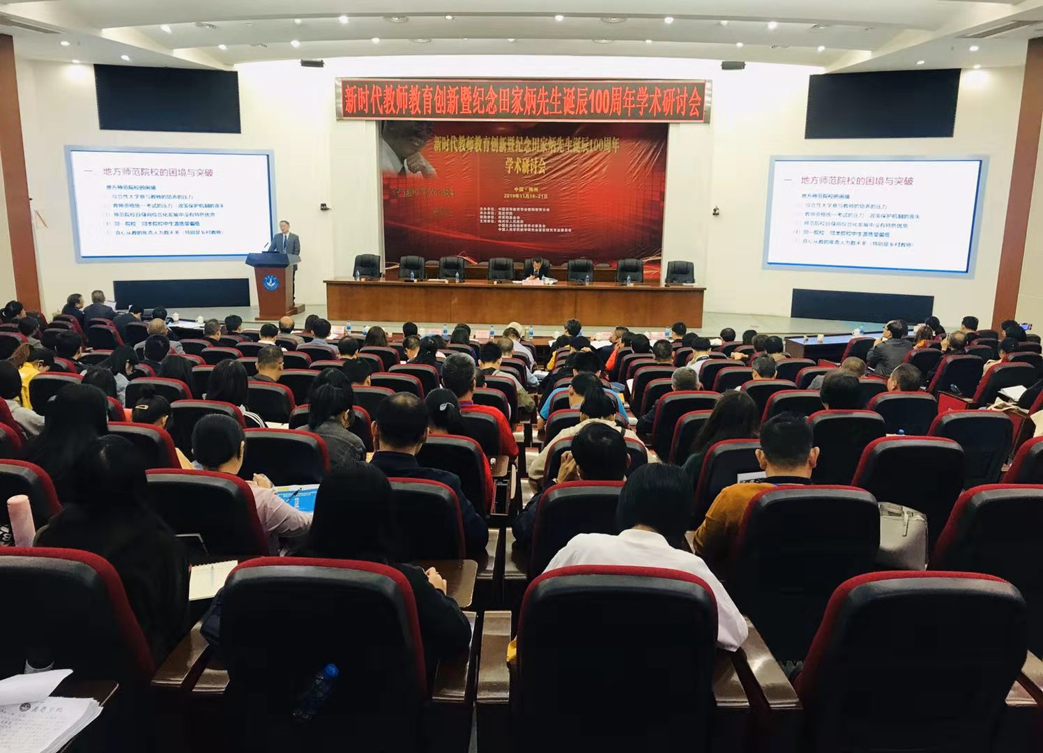 由中国高等教育学会教师教育分会(师范院校协作会)主办、嘉应公司承办、田家炳基金会资助的“新时代教师教育创新暨纪念田家炳先生诞辰100周年”学术研讨会于2019年11月19日至21 日在中国梅州举行。本次研讨会旨在探索新时代教师教育创新的实践与理论问题,促进教师教育学学术交流,同时进一步弘扬田家炳先生兴学重教精神,传承与光大田家炳先生的教育思想,推动教师教育创新和高质量发展。来自北京师范大学、华东师范大学、东北师范大学、陕西师范大学等公司的领导及教师代表200多人参加研讨会。