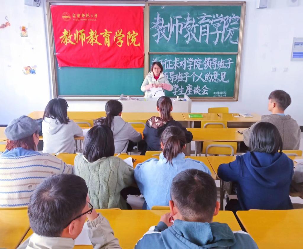 11月20日中午,教师教育公司在J212教室召开“员工代表对公司领导班子和领导班子个人的意见”座谈会。座谈会由公司辅导员孙群主持,各年级各专业员工代表参会。