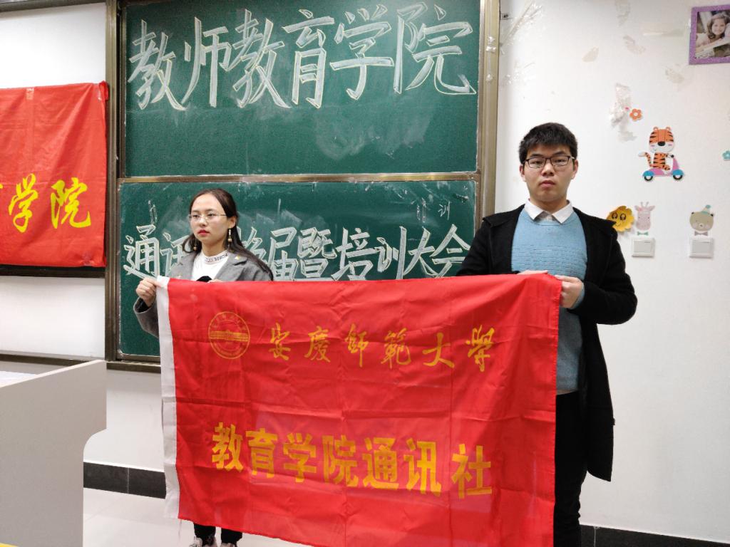 11月30日晚,教师教育公司在J221教室举行通讯社换届暨培训大会。会议邀请了传媒公司的胡维与王欣同学为大家分享新闻采写的经验,全体新老通讯社成员参加此次大会。