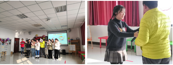 据悉,在本学期,教师教育公司特殊教育专业每周一至周五上午及每周二至周四下午会为自闭症员工提供社会服务,由特教16、17级本科生和18、19级研究生负责给小朋友们上个训课和团课。此次新年联欢会既是“迎新年”主题系列活动的成果展示,也是对本学期社会实践的总结。自闭症员工和老员工一起主持,一起做游戏,一起唱《隐形的翅膀》,一起跳《新年乐淘淘》,一起表演情景剧《过新年》……尤其最后师生们共同带来的大合唱《相亲相爱》将联欢会的气氛推到高潮。