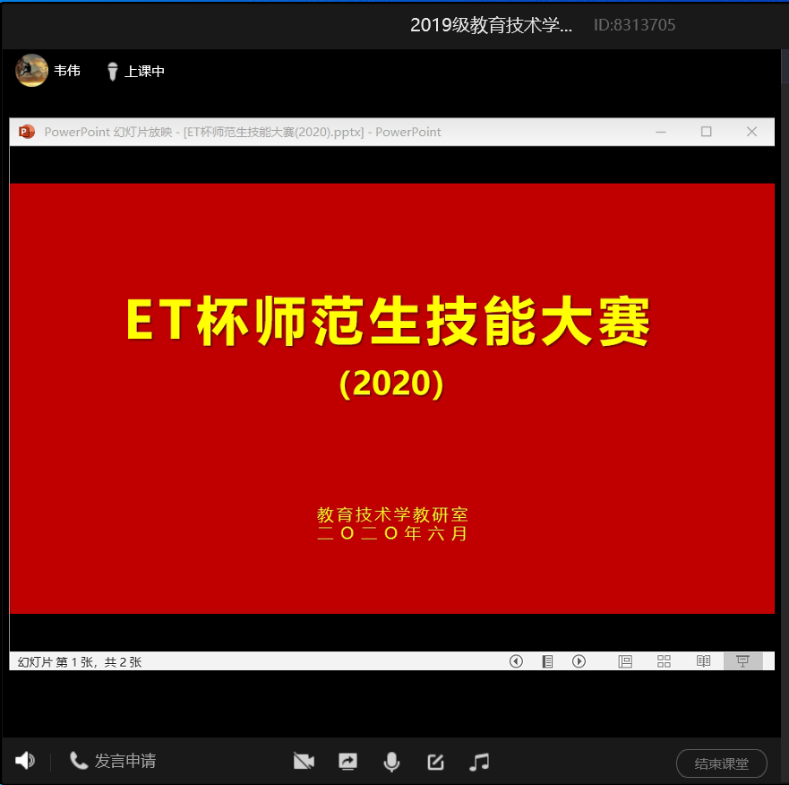 6月17日下午,为进一步检验线上教育见习的实践效果,促进教技员工师范生技能的培养,教育技术学专业充分发挥专业优势,在线举行“ET杯(2020)师范生技能大赛”。教育技术学全体师生齐聚线上,共睹学子线上教学风采。