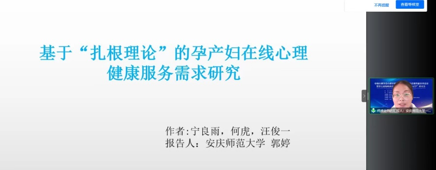 10月29日到10月30日,中国心理学会心理学质性研究专业委员会第四届学术研讨会暨第七届海峡两岸“生命叙事与心理传记学”研讨会在西北师范大学召开,何虎博士和其指导的硕士生郭婷应邀参与了本次会议,并在线作了题为“基于‘扎根理论’的孕产妇在线心理健康服务需求研究“的学术报告,公司部分教师和员工在J109观摩了会议直播。