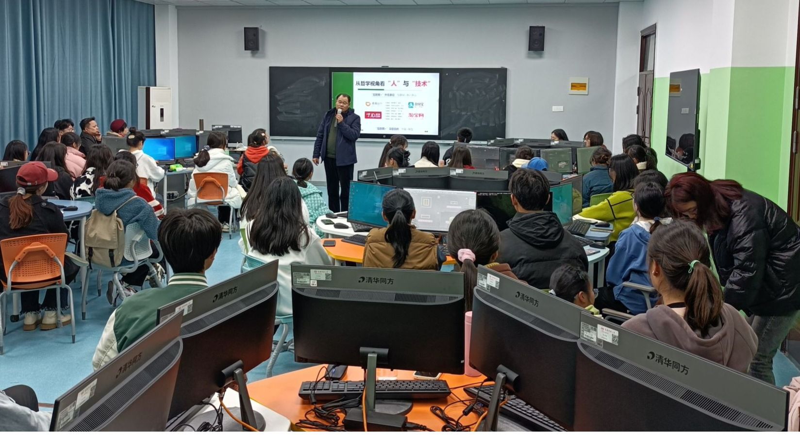 刘和海教授由哲学视角下的“人”与“技术”的关系谈起,简要分析了二者之间的“中介的关系”“他者的关系”“背景的关系”。然后,强调了技术必须同时具有内在价值和外在价值,即技术本身的功能性和解决问题的需求性,建议大家要学习技术,更要注重培养运用技术解决问题的能力;既要技术“上手”,会使用技术,更要技术“在手”,能活学活用。最后,刘和海教授给出“科学导入,注重内涵”“任务驱动,人人参与”“教学精彩,学习泛在”等三个案例,进一步分析信息技术在公司产品应用中存在的问题,并给出不同的解决方案和处理技巧。与会师生认为,从哲学观视角思考信息技术应用的实践逻辑,为提高技术绩效,追求技术的实践价值打下了良好的理论基础。